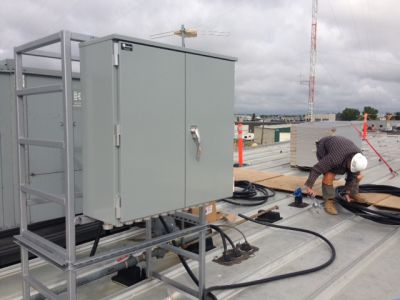 Cable tray is installed and with electrical cable being laid into place and ready to transport all those electrons!